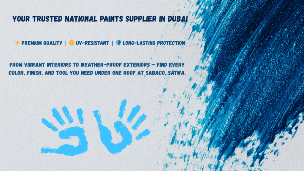 If you are looking for quality paints, there’s nothing to worry about because Sabaco is the best national paint shop in Dubai. They offer a host of National Paints products, renowned for their tough surfaces in rich colors and quite simply better finishes. The coatings are formulated keeping in mind the extreme climate of Dubai hot temperatures and sudden increase in humidity to provide long lasting protection and beauty for all types of surfaces.